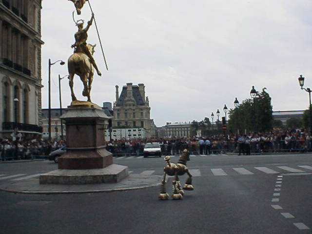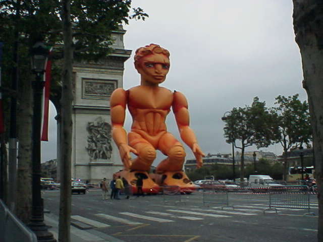 凱旋門の前の巨大な人形 パリ市内に5個置かれ五大陸を表現